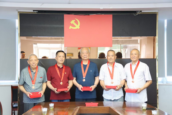 在建黨一百周年之際,公司總經理陳誼為在黨五十周年的六位老黨員頒發了“光榮在黨50年”紀念章,與會人員向榮獲紀念章的老黨員表示熱烈的祝賀和崇高的敬意。會上,有66年黨齡的老黨員鄭文生同志為大家講述黨史,宣揚共產黨員在艱苦歲月中不怕犧牲、積極為黨工作的優良作風。